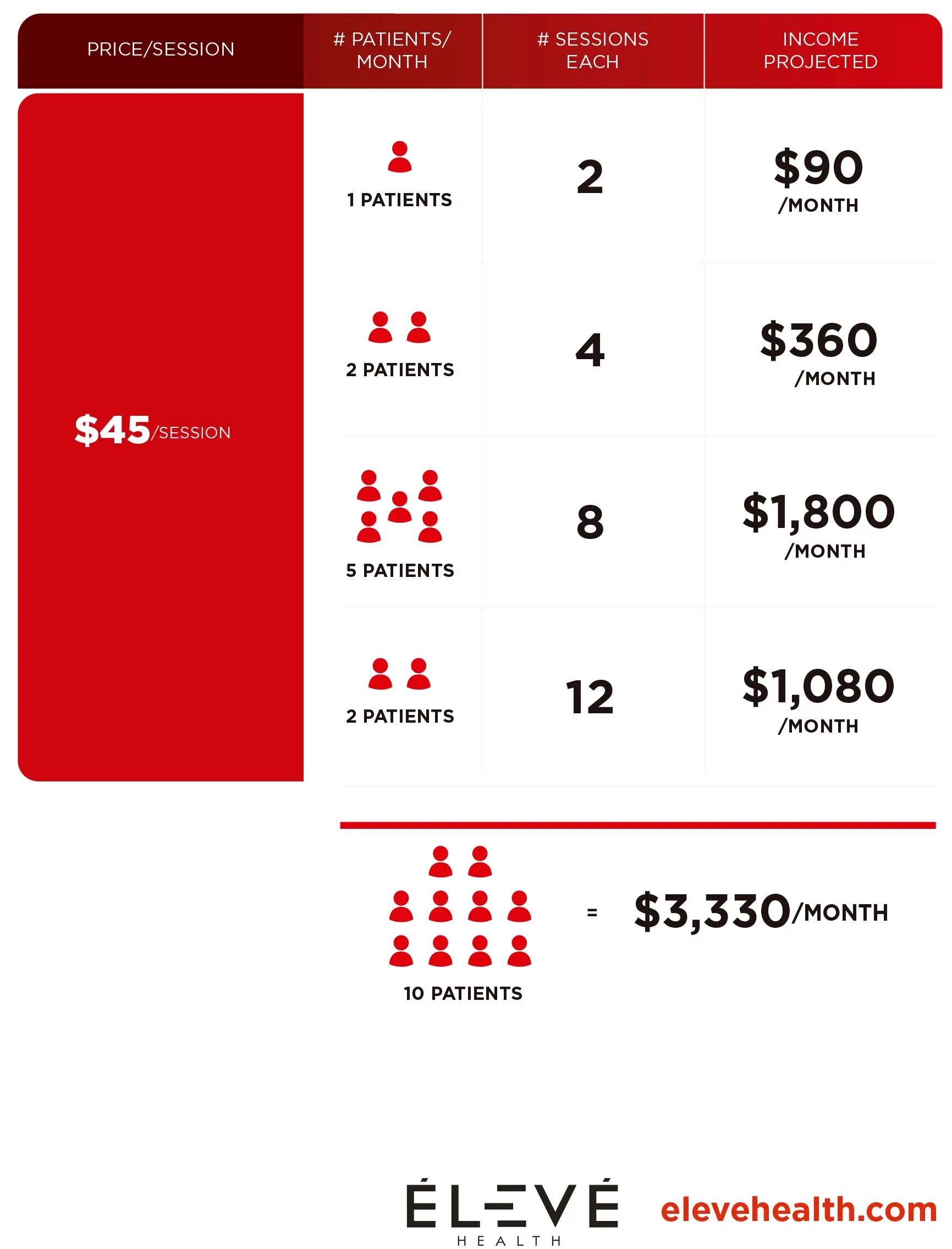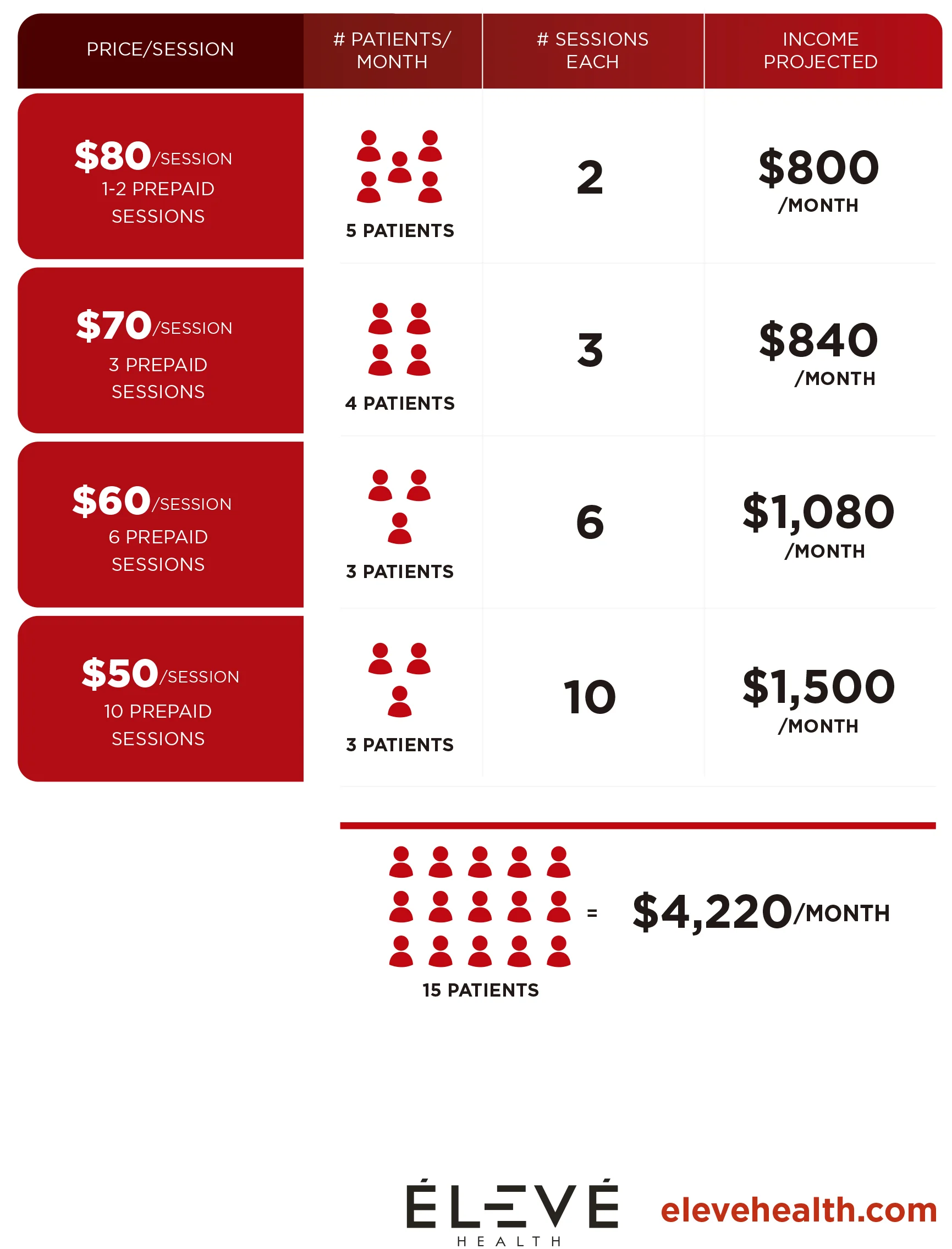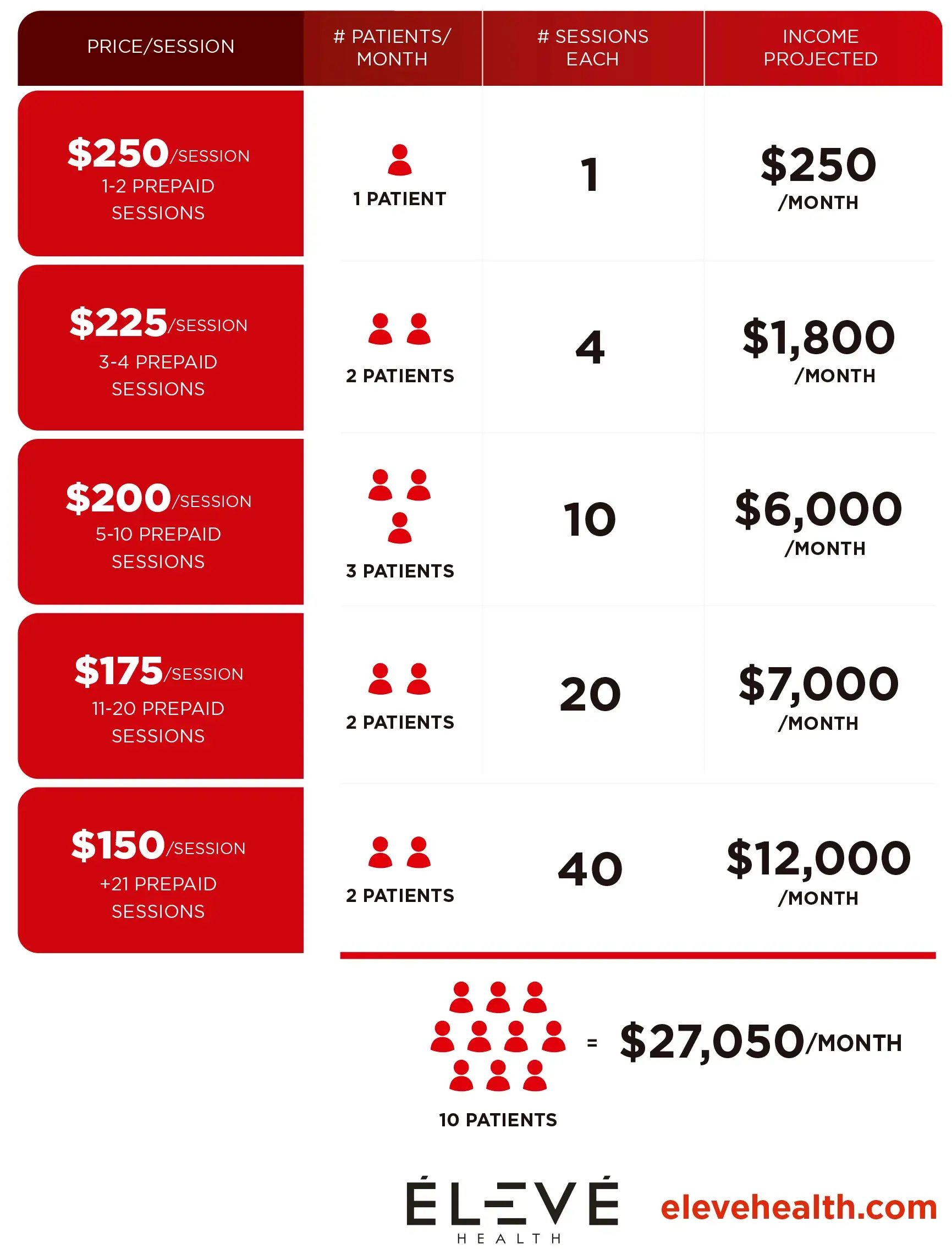 Here are some examples of cost per session on Hydro Light Beds and examples of income projection for your business.